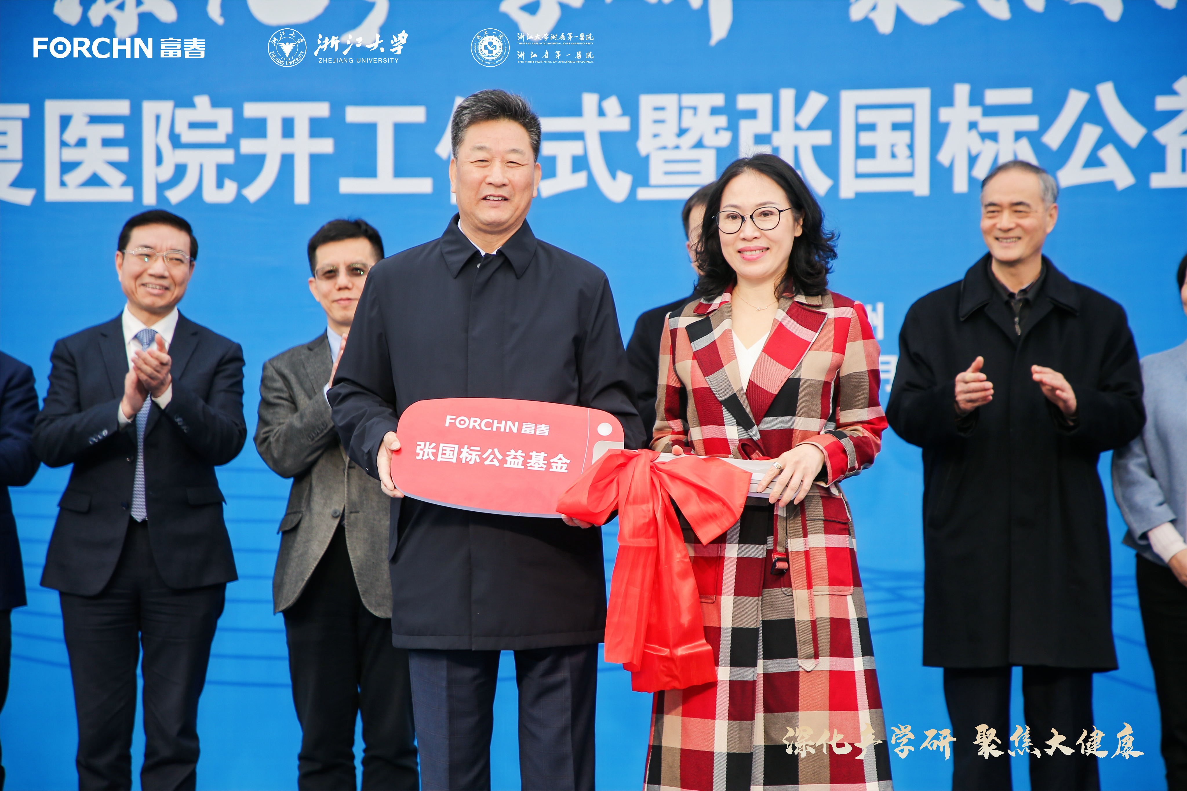 3月18日,“深化產學研 聚焦大健康”浙江大學康復醫院開工儀式在杭州市余杭崇賢港舉行。杭州市委常委、余杭區委書記張振豐,杭州市政協黨組副書記、副主席張仲燦,余杭區委常委、常務副區長陳夏林,余杭區副區長許玲娣,浙江大學黨委常委、醫學院常務副院長李曉明,浙江大學醫學院附屬第一醫院院長黃河,浙江大學醫學院附屬第一醫院副院長陳作兵,浙江大學醫學院附屬第二醫院原黨委書記陳正英,富春控股集團董事長張國標、黨委書記周軍福、總裁張樟生以及杭州市紅十字會、衛健委、民政局、醫保局有關領導出席儀式。
