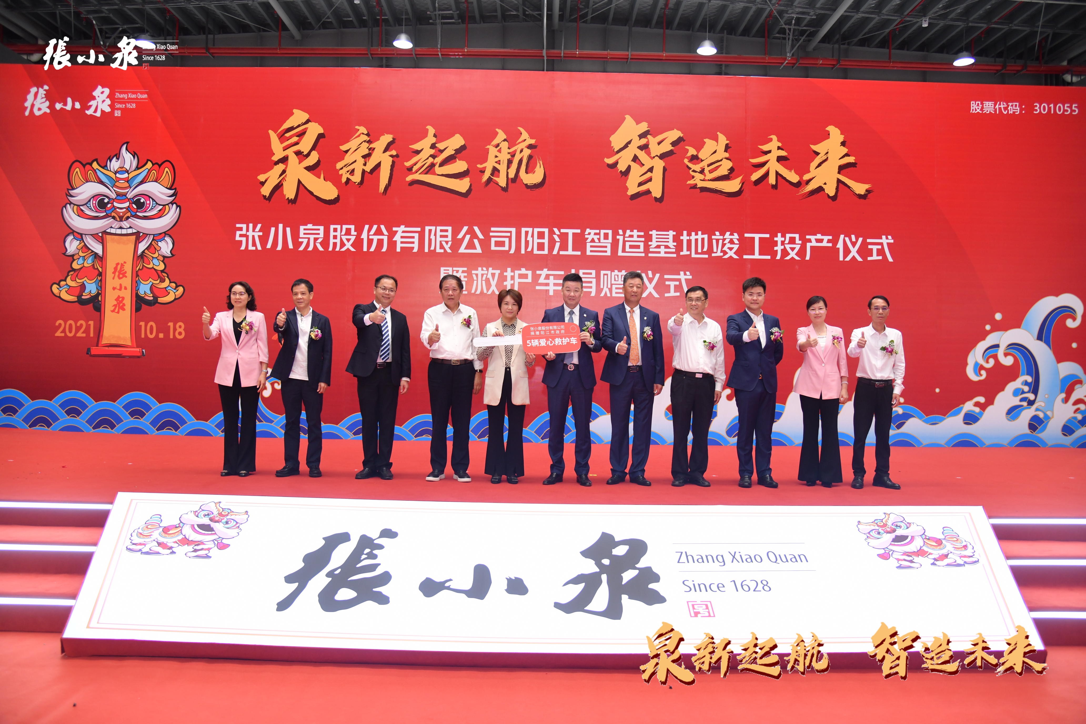 10月18日,張小泉陽江智造基地竣工投產暨救護車捐贈儀式在廣東陽江江城銀嶺科技產業園舉行。張小泉股份有限公司向陽江市人民政府捐贈5輛救護車。“張小泉”作為民族品牌,始終秉承“良鋼精作”的祖訓,以用戶需求為出發點,在為廣大消費者“創藝美好生活”的同時,不忘初心,熱心公益,持續踐行“來源于百姓,服務于百姓”的核心價值觀,助推當地醫療事業發展。