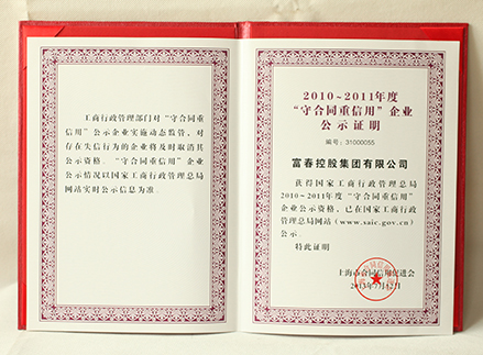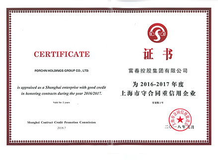 上海浦東新區“上海市守合同重信用企業創建”優秀企業