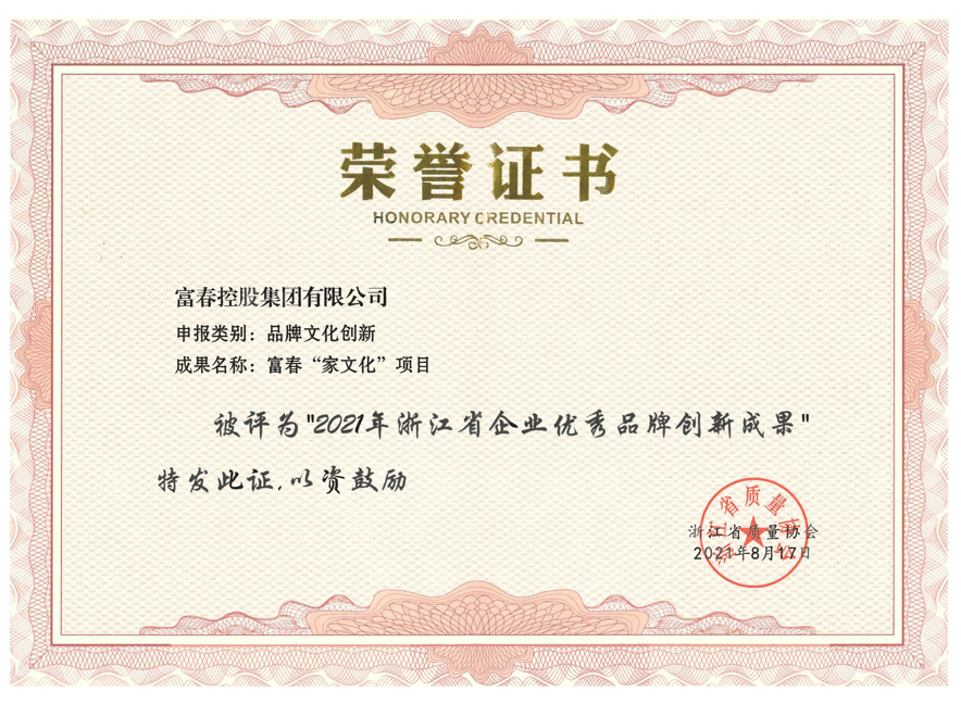 2021年浙江省企業優秀品牌創新成果-品牌文化創新