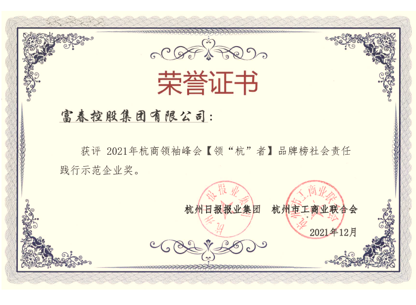 2021年杭商領袖峰會【領“杭”者】品牌榜社會責任踐行示范企業