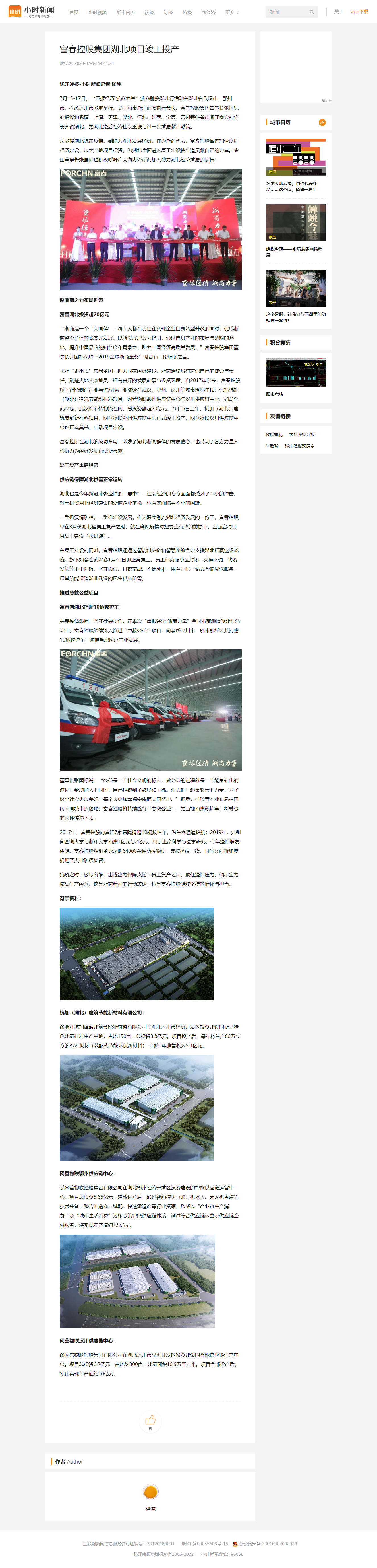 錢江晚報-小時新聞:富春控股集團湖北項目竣工投產